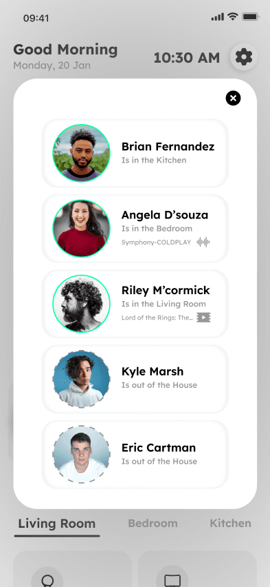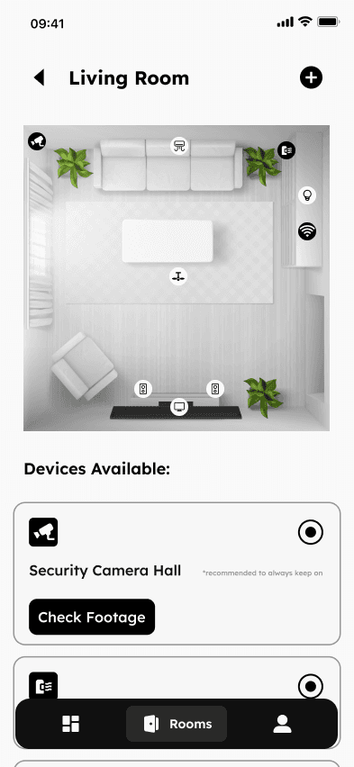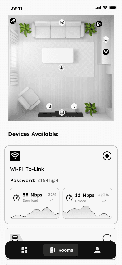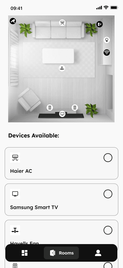 Defined a color scheme and iconography consistent with smart home aesthetics, ensuring easy recognition of device types.