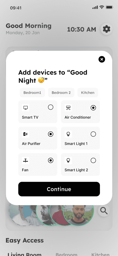 Crafted a clean, modern UI design with a focus on user-friendly controls for various appliances.
